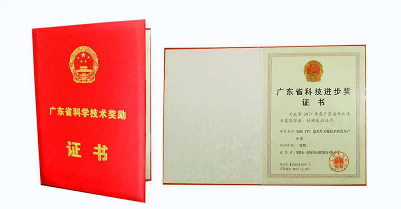 Recently,Sunnypol received the Science and Technology Award certificate of Guangdong from People's Government of Guangdong province. The project “Research and Industrialization of the Key Technology of Wide TFT Polarizer“ won the first prize of Science and Technology Progress Award of Guangdong.