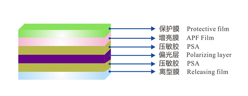 用作液晶显示器的底偏光片片,可显著提升背光的利用率。用于手机、导航仪、平板电脑等对亮度或功耗要求高的设备。